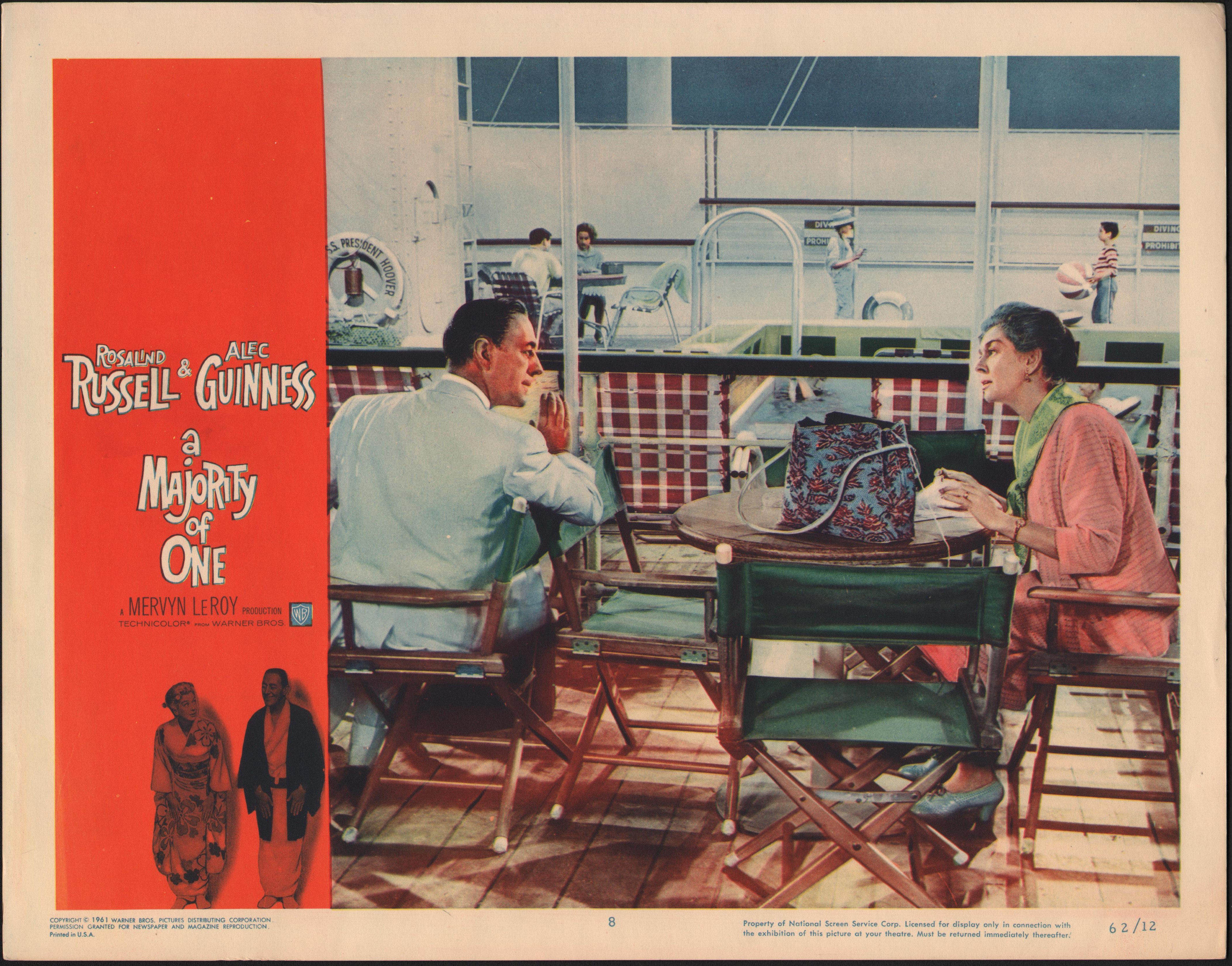 Original 1961 Warner Bros. “A Majority Of One”, starring Rosalind Russell and Alec Guinness. Lobby card 8. Numbered 62/12 11in x 14in