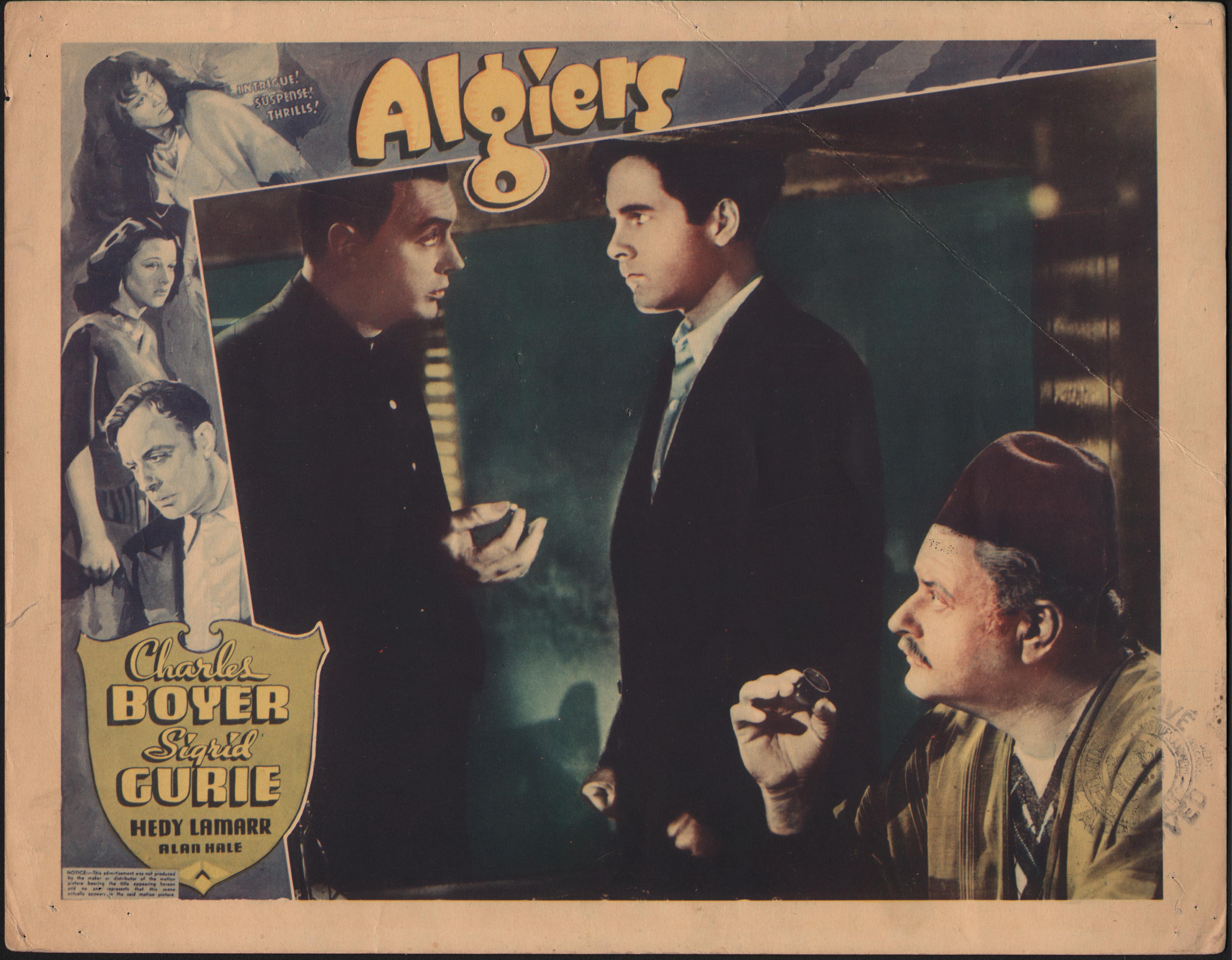 Original 1938 United Artists “Algiers”, starring Charles Boyer, Sigrid Gurie and Hedy Lamarr. 11in x 14in