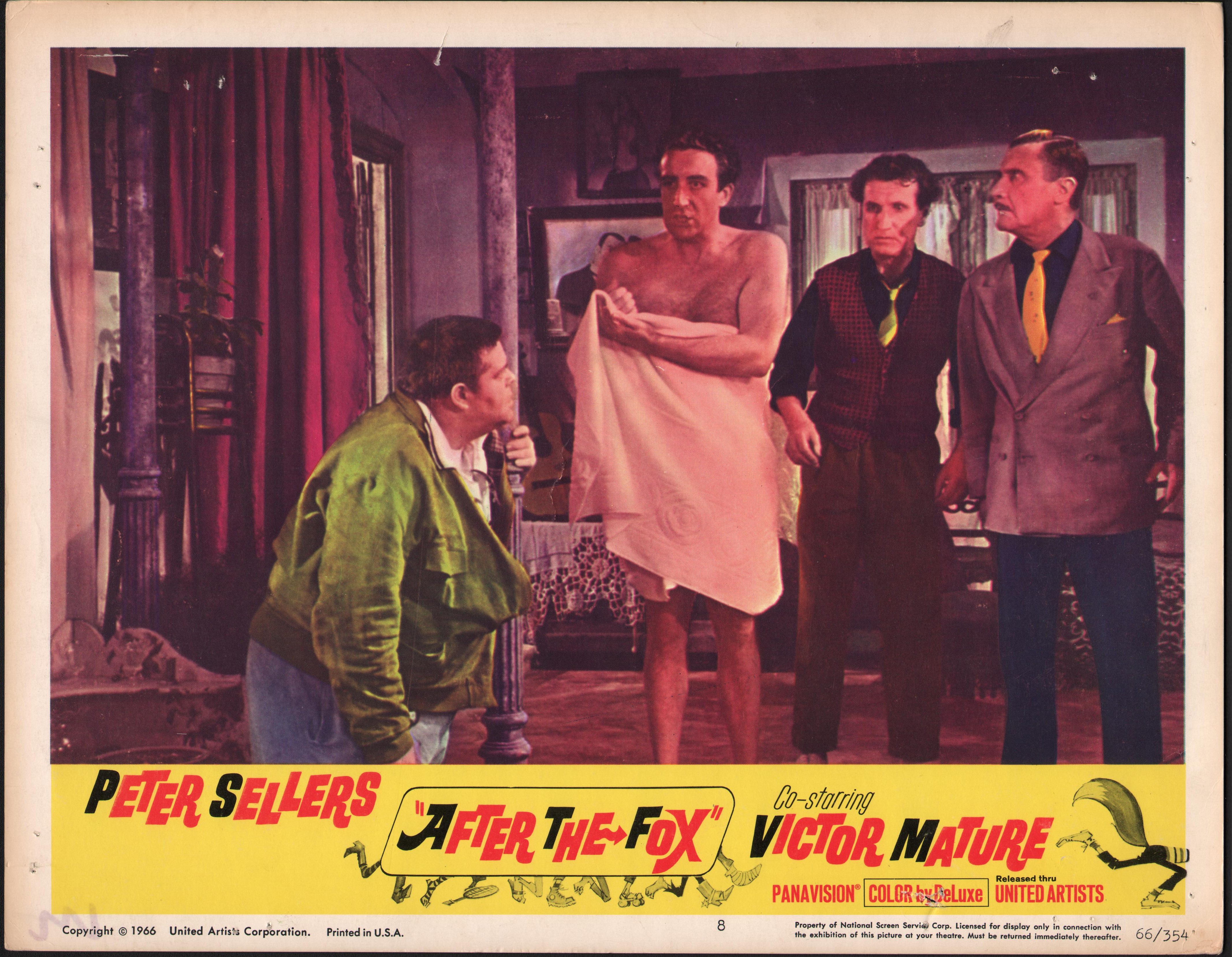 Original United Artists “After the Fox”, starring Peter Sellers. Co-starring Victor Mature. Lobby card 8. Numbered 66/354  11in x 14in