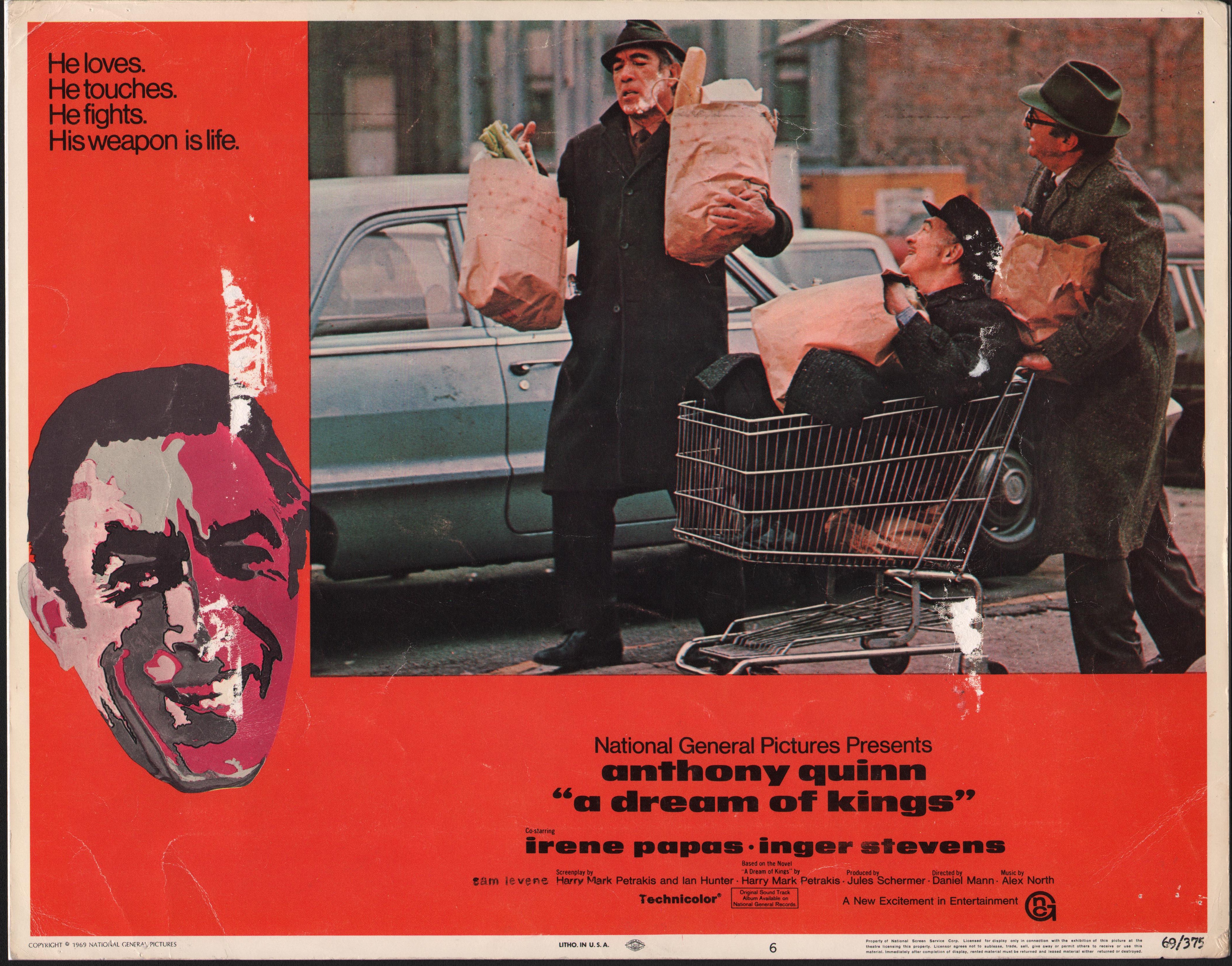 Original 1969 National General Pictures “A Dream Of Kings”, starring Anthony Quinn. Co-starring Irene Papas. Lobby card 6. Numbered 69/375 11in x 14in
