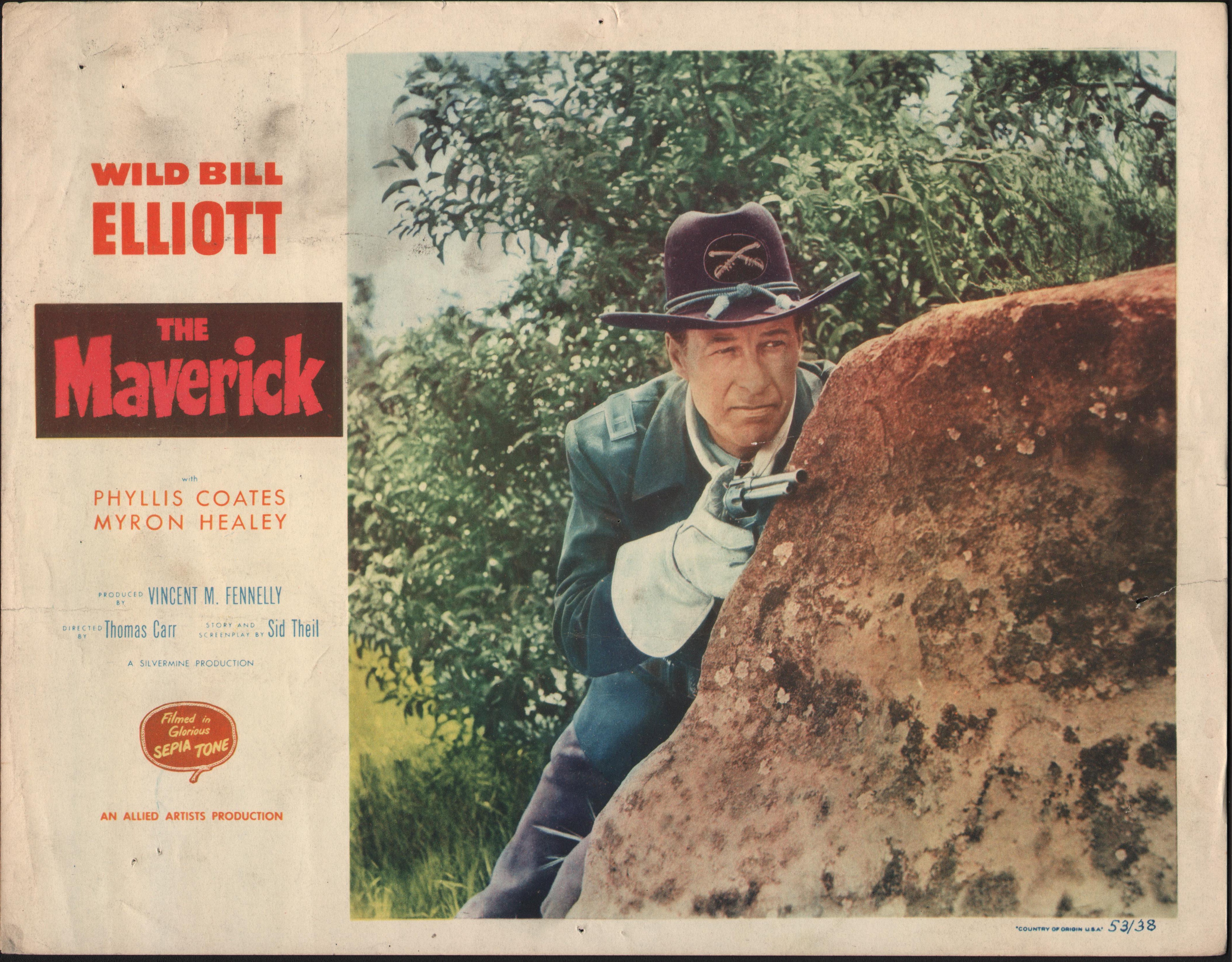 Original 1952 Allied Artists “Wild Bill Elliott The Maverick”, Starring Will Bill Elliott, Phyllis Coates and Myron Healey. Numbered 53/38  11in x 14in