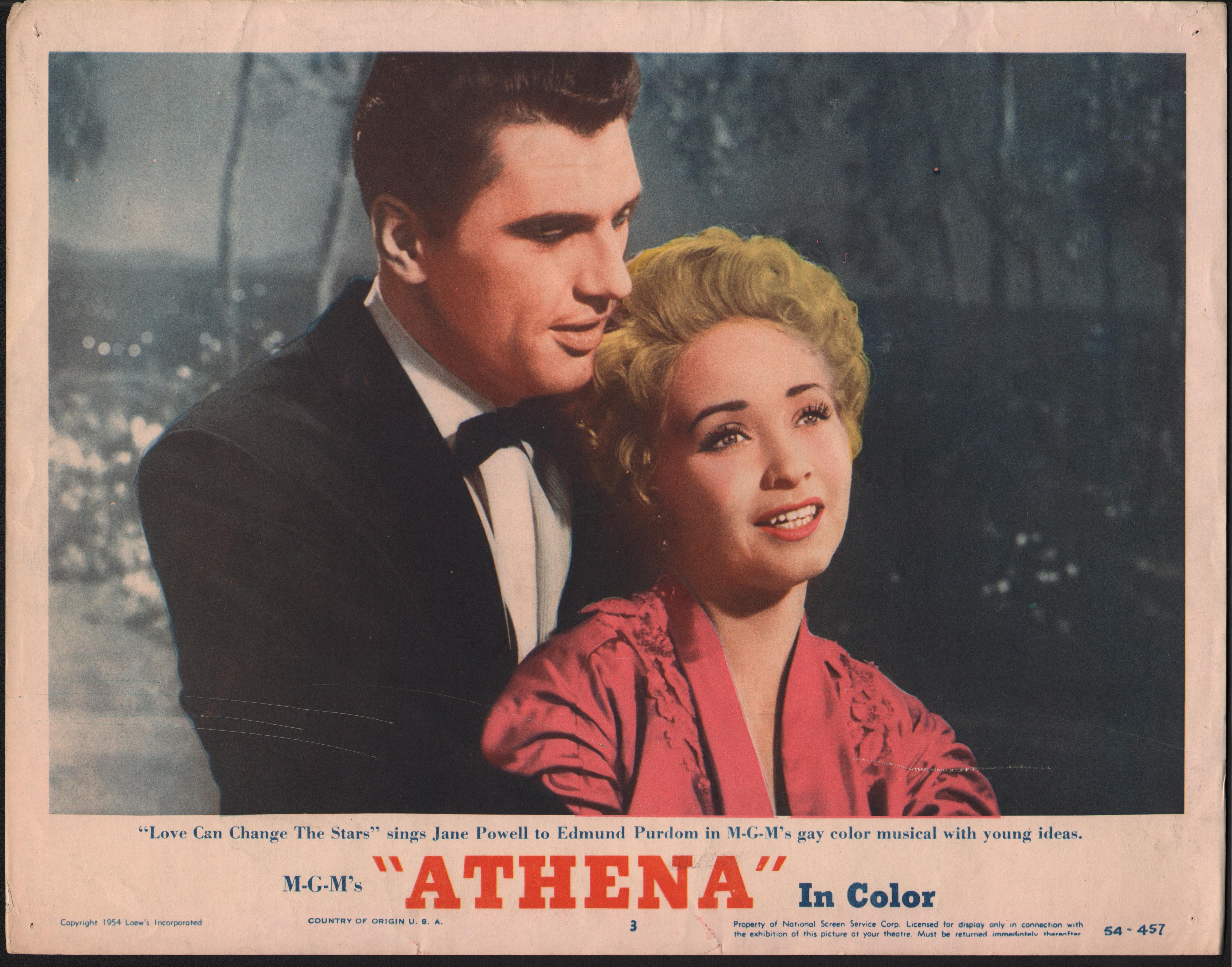 Original 1954 MGM’s “Athena”, starring Jane Powell, Debbie Reynolds, Vic Damone and Edmund Purdom. Lobby card 3. Numbered 54-457 11in x 14in