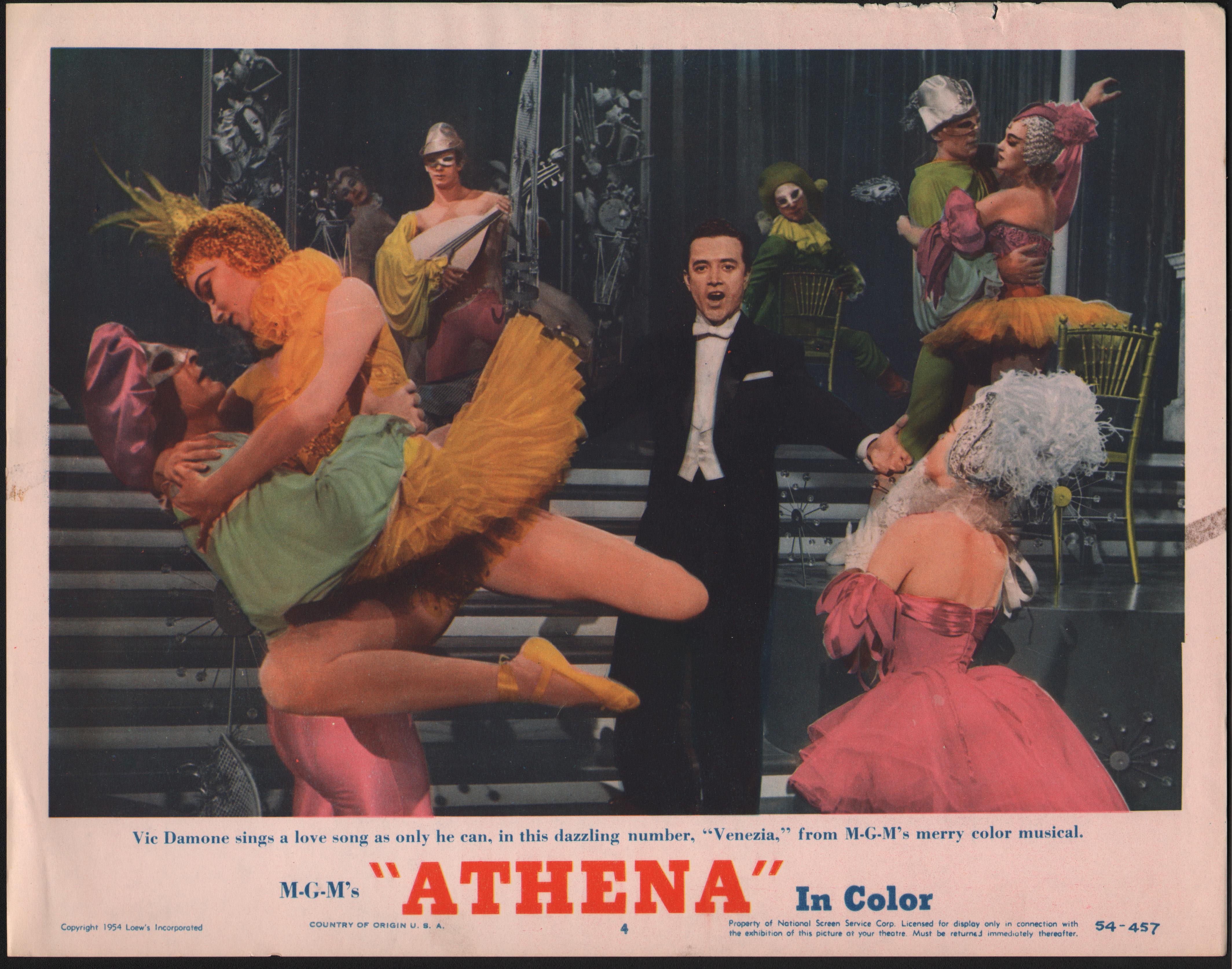 Original 1954 MGM’s “Athena”, starring Jane Powell, Debbie Reynolds, Vic Damone and Edmund Purdom. Lobby card 4. Numbered 54-457 11in x 14in