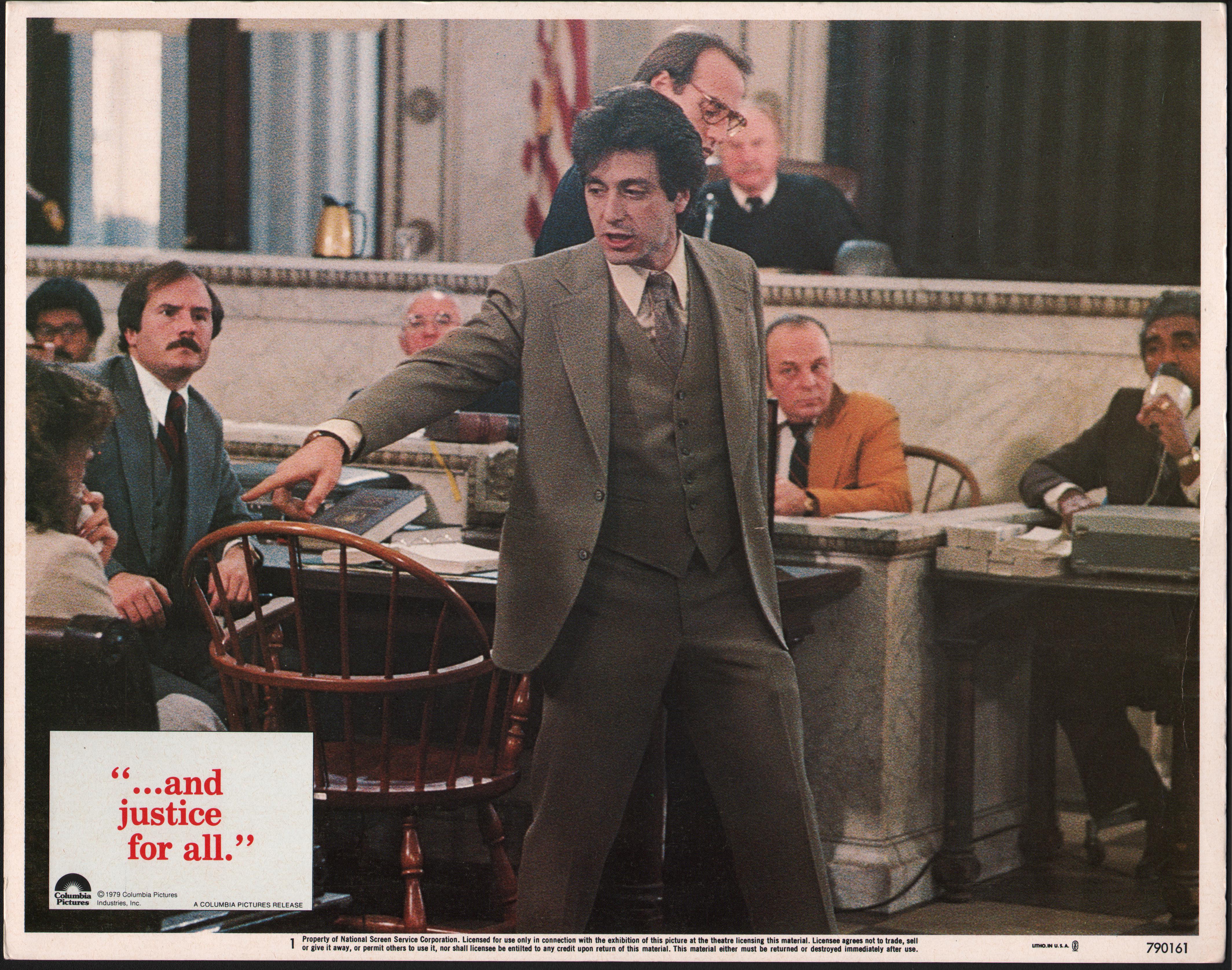 Original 1979 Columbia Pictures “…and justice for all.”, starring Al Pacino, Jack Warden, John Forsythe and Lee Strasberg. Lobby card 1. Numbered 790161 11in x 14in